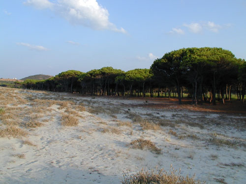 spiaggia di sabbia e dalla pineta di Sa Preta Ruja. La
